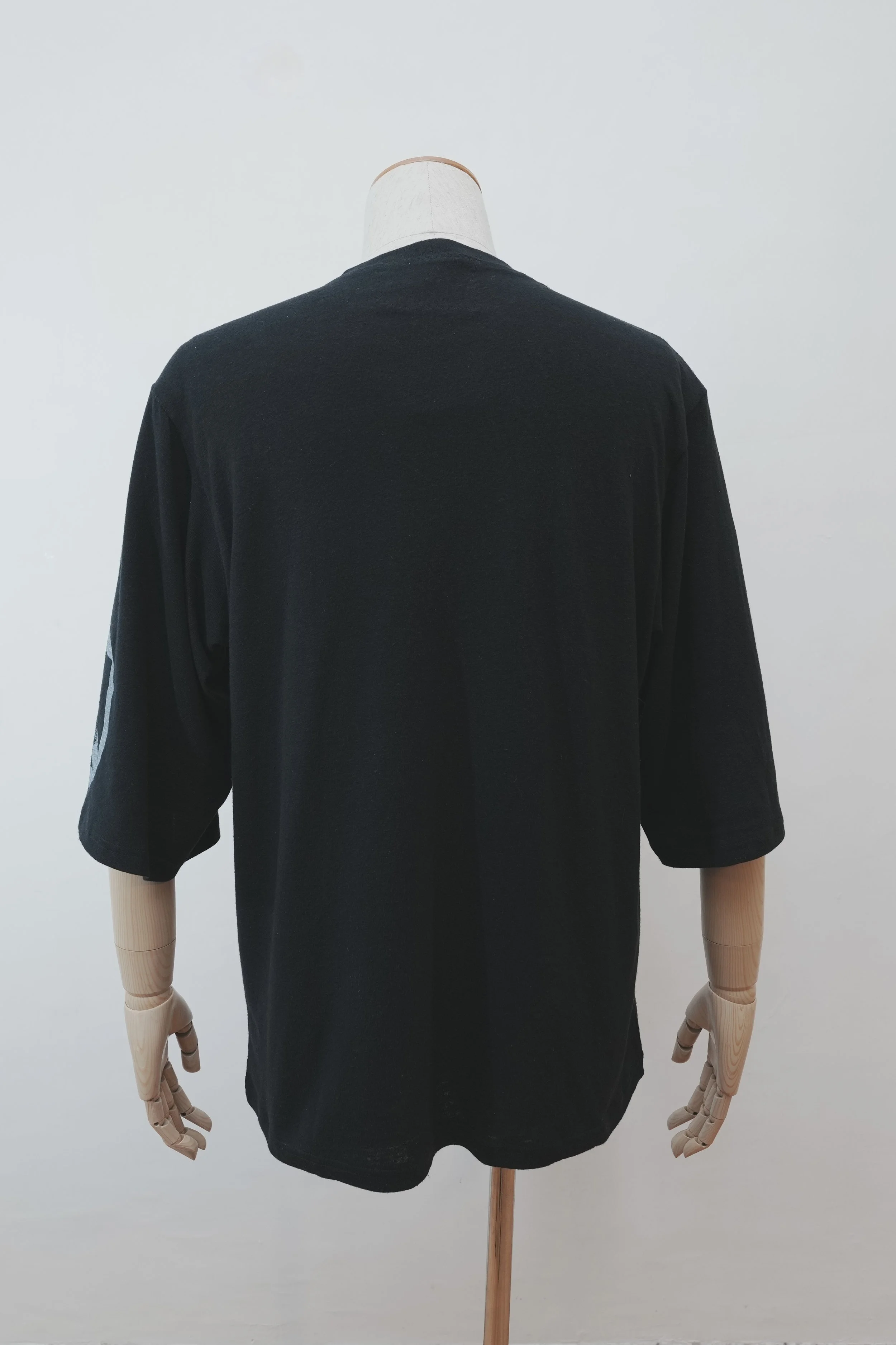 The base is our signature 60/1 jersey, knitted in Japan from a breathable blend of 55% hemp and 45% cotton. Lightweight and smooth to the touch, the fabric offers a naturally relaxed drape and soft handfeel, making it ideal for everyday wear.