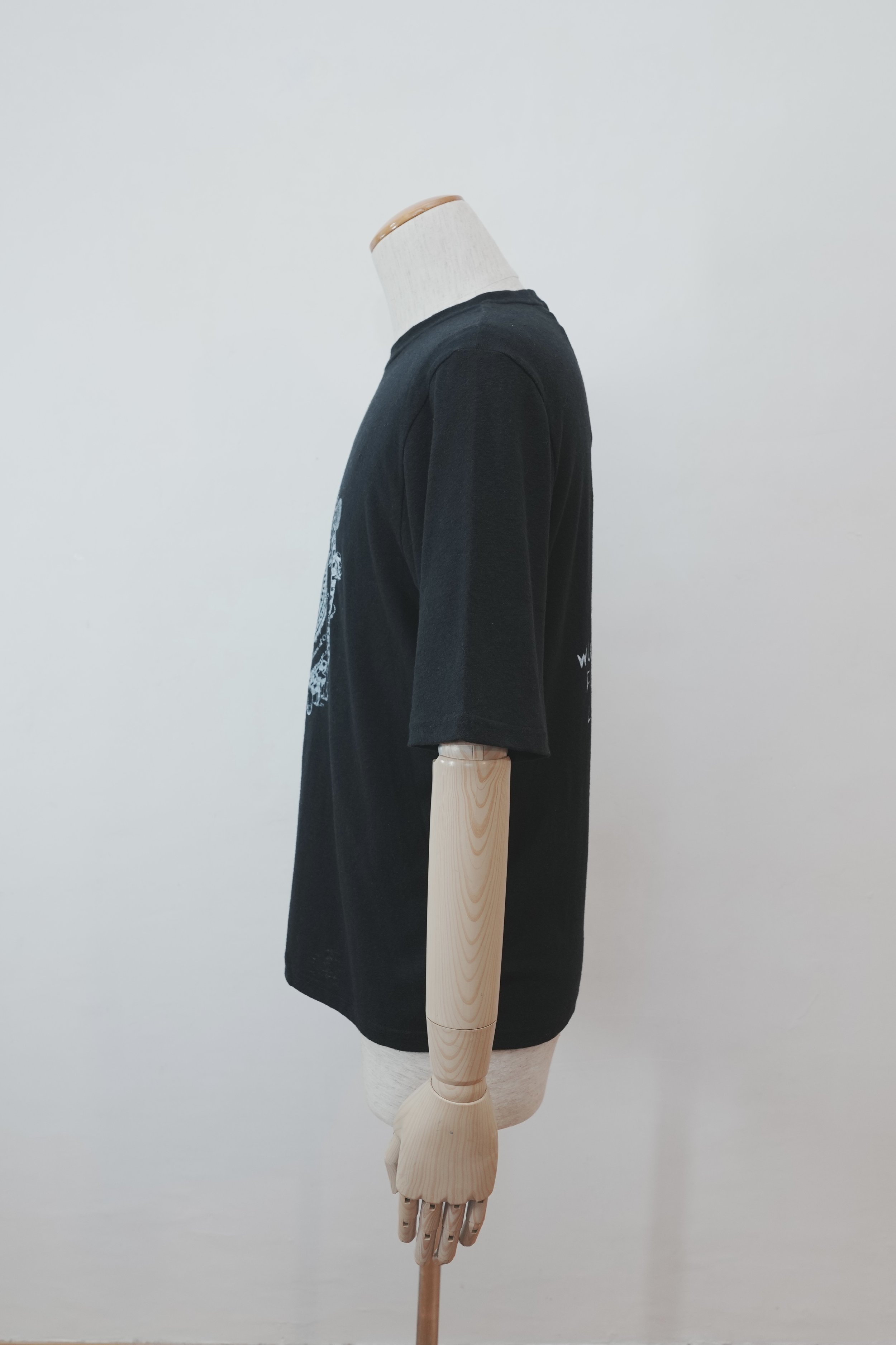 The base is our signature 60/1 jersey, knitted in Japan from a breathable blend of 55% hemp and 45% cotton. Lightweight and smooth to the touch, the fabric offers a naturally relaxed drape and soft handfeel, making it ideal for everyday wear.