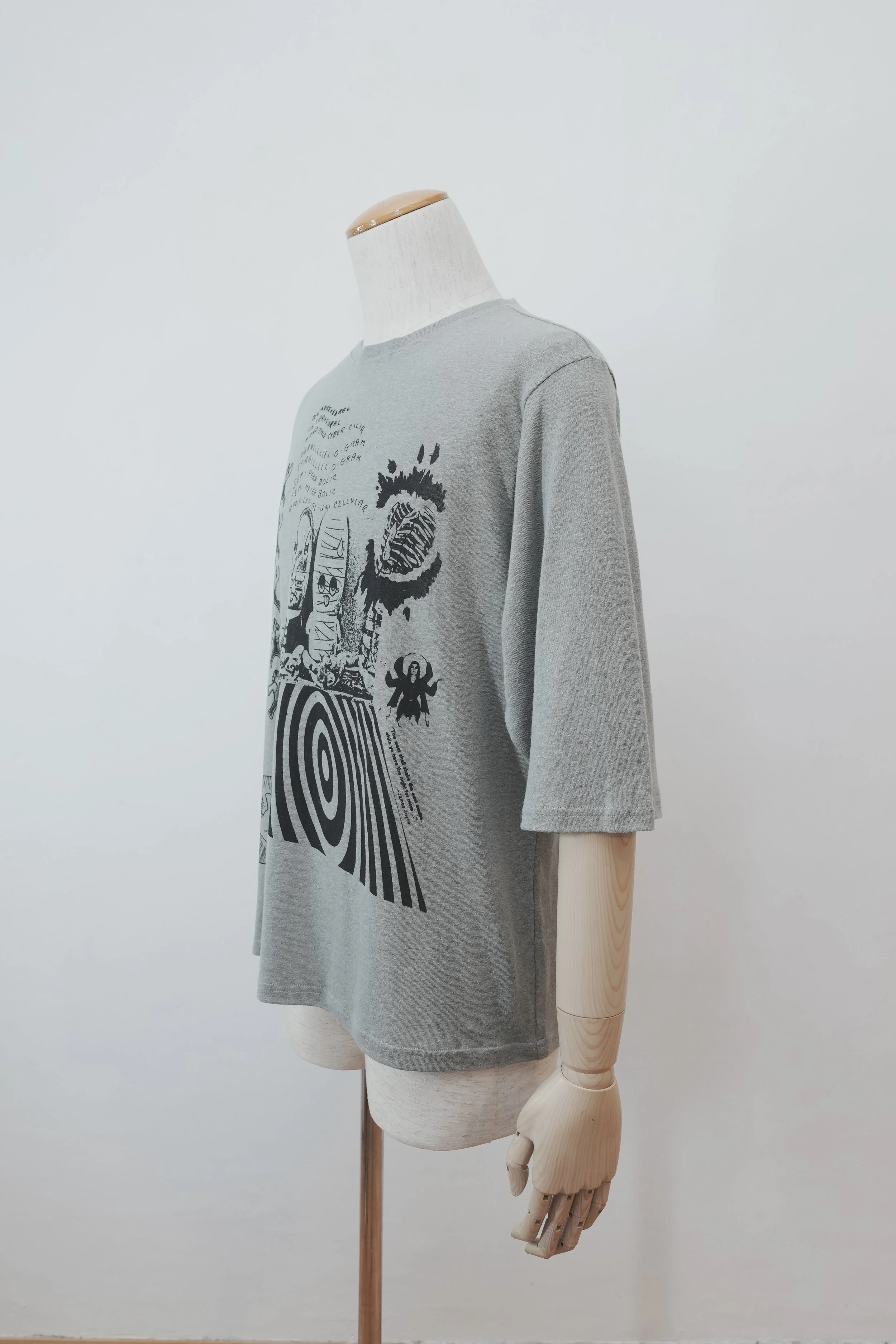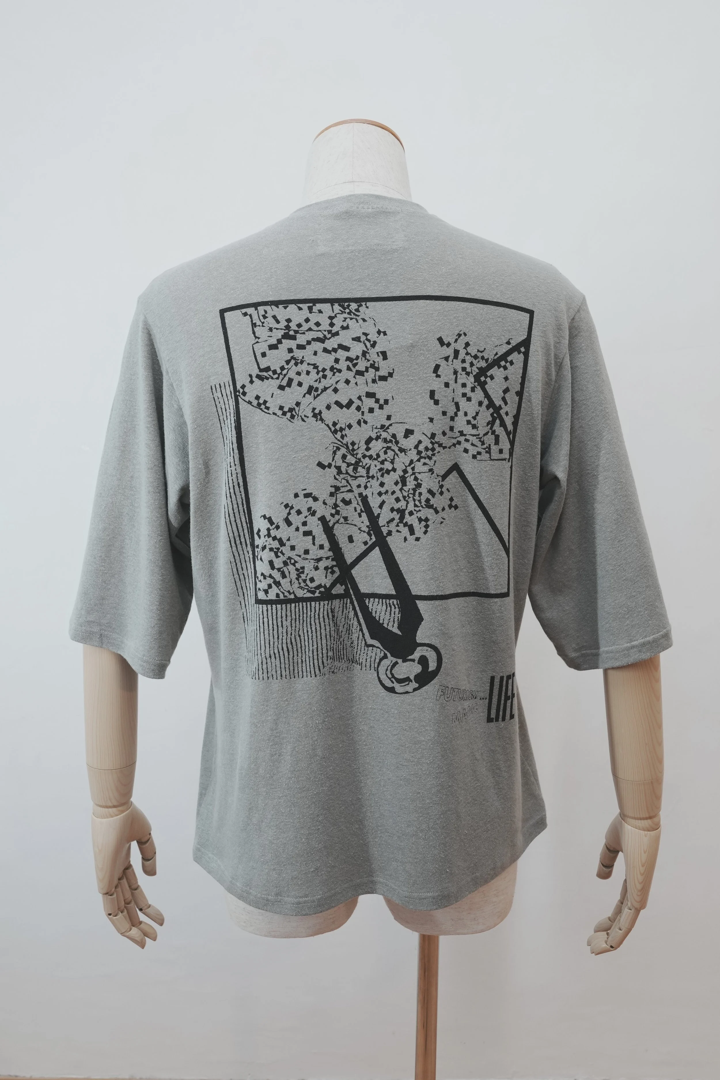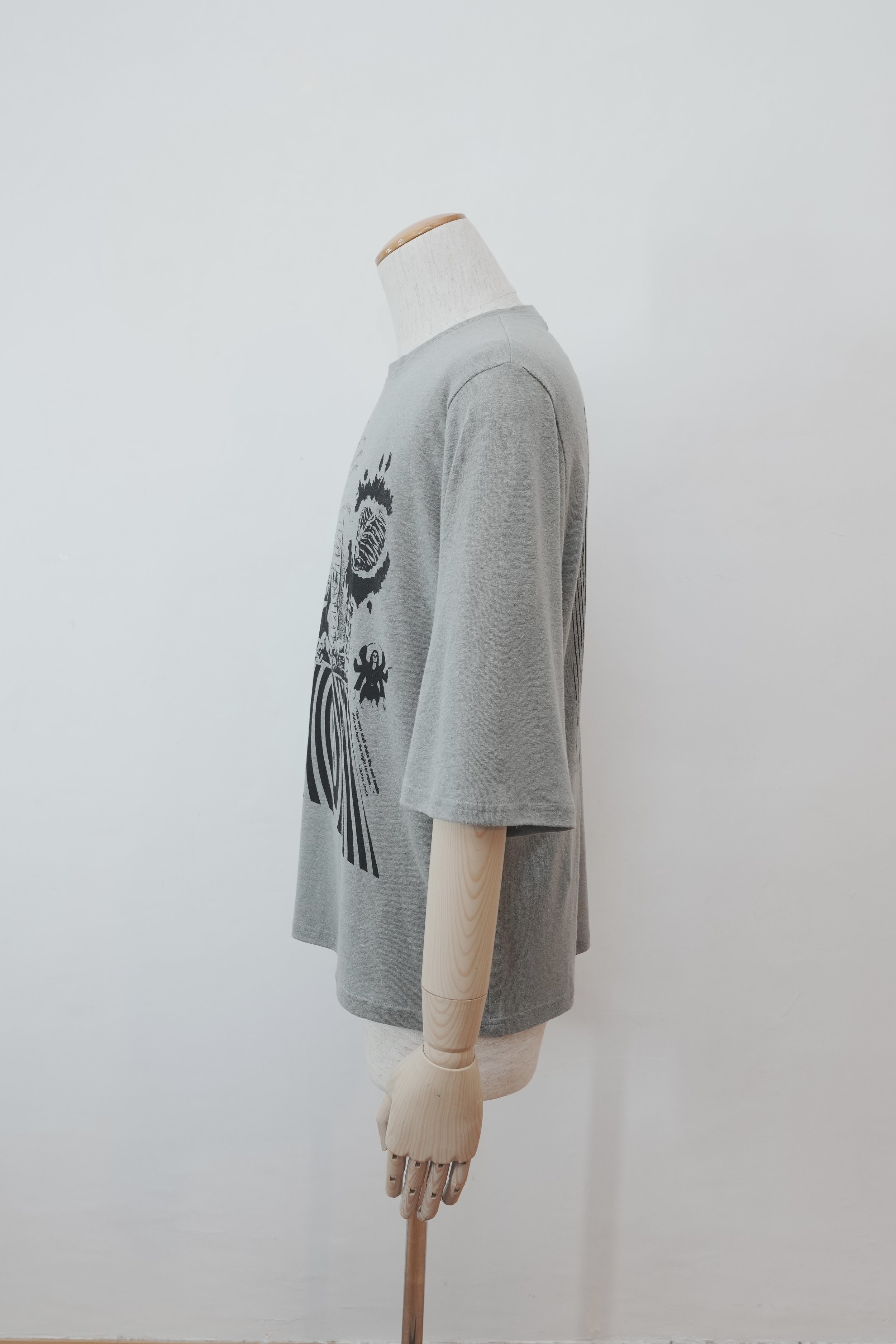 The base is our signature 60/1 jersey, knitted in Japan from a breathable blend of 55% hemp and 45% cotton. Lightweight and smooth to the touch, the fabric offers a naturally relaxed drape and soft handfeel, making it ideal for everyday wear.