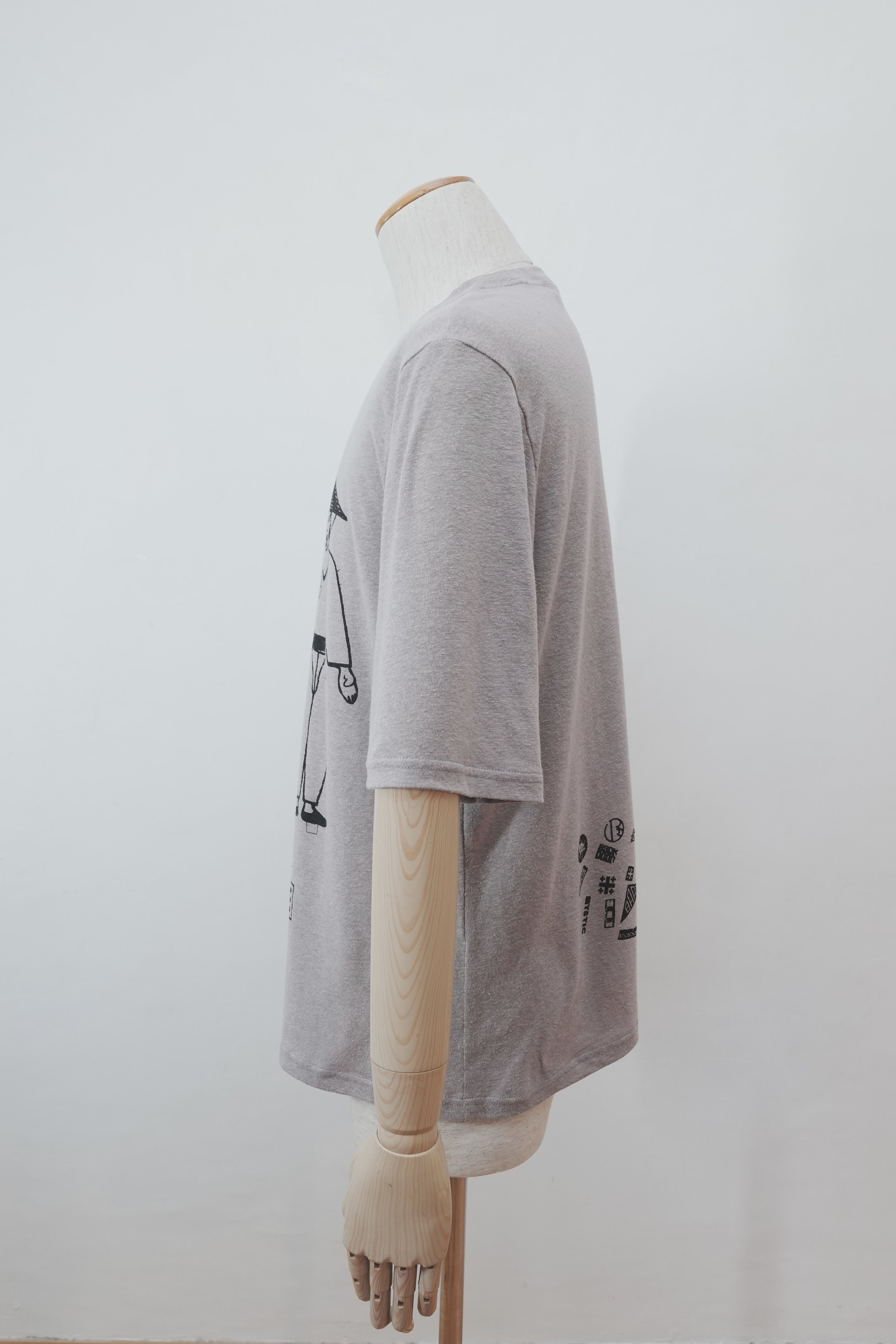 The base is our signature 60/1 jersey, knitted in Japan from a breathable blend of 55% hemp and 45% cotton. Lightweight and smooth to the touch, the fabric offers a naturally relaxed drape and soft handfeel, making it ideal for everyday wear.