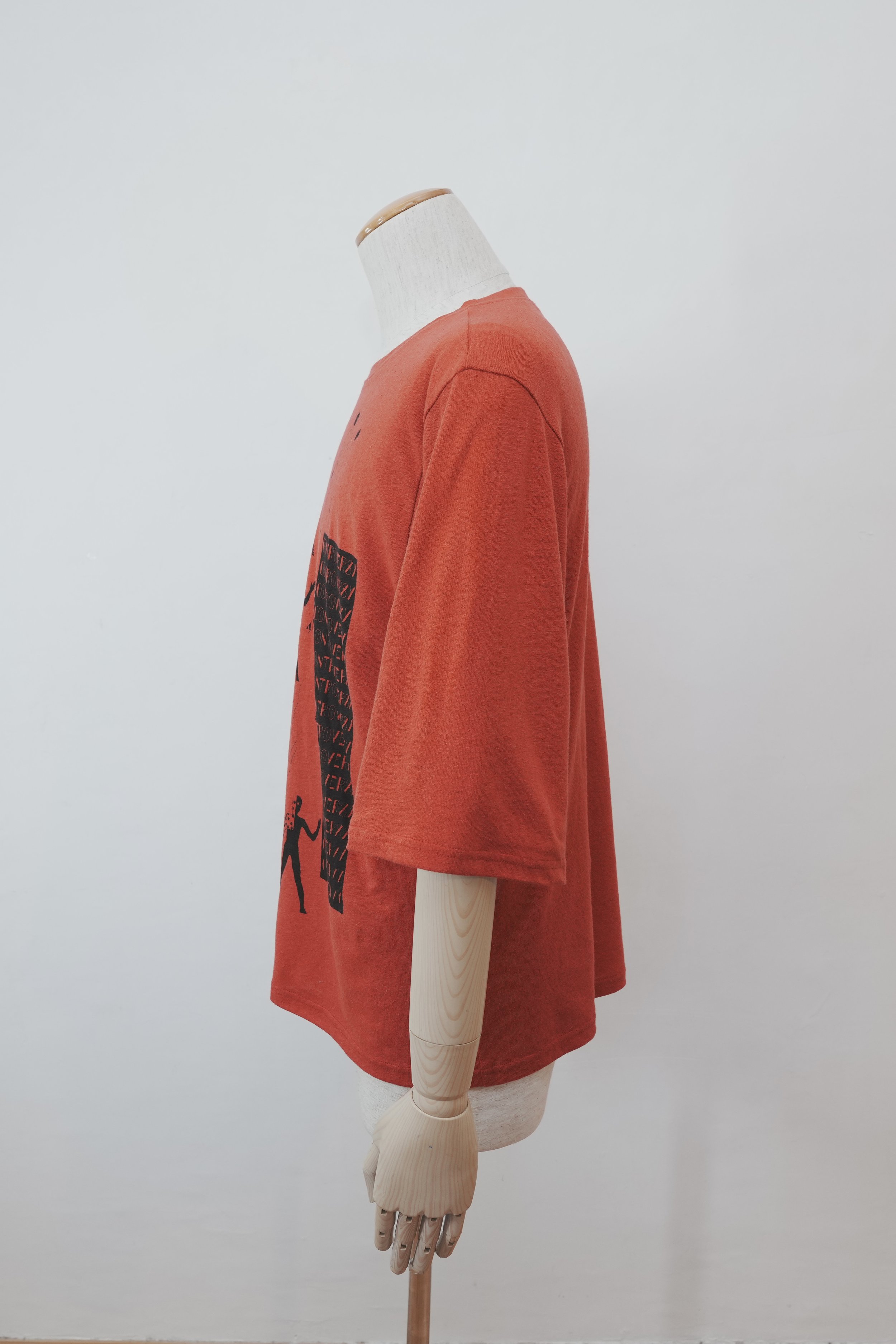 The base is our signature 60/1 jersey, knitted in Japan from a breathable blend of 55% hemp and 45% cotton. Lightweight and smooth to the touch, the fabric offers a naturally relaxed drape and soft handfeel, making it ideal for everyday wear.