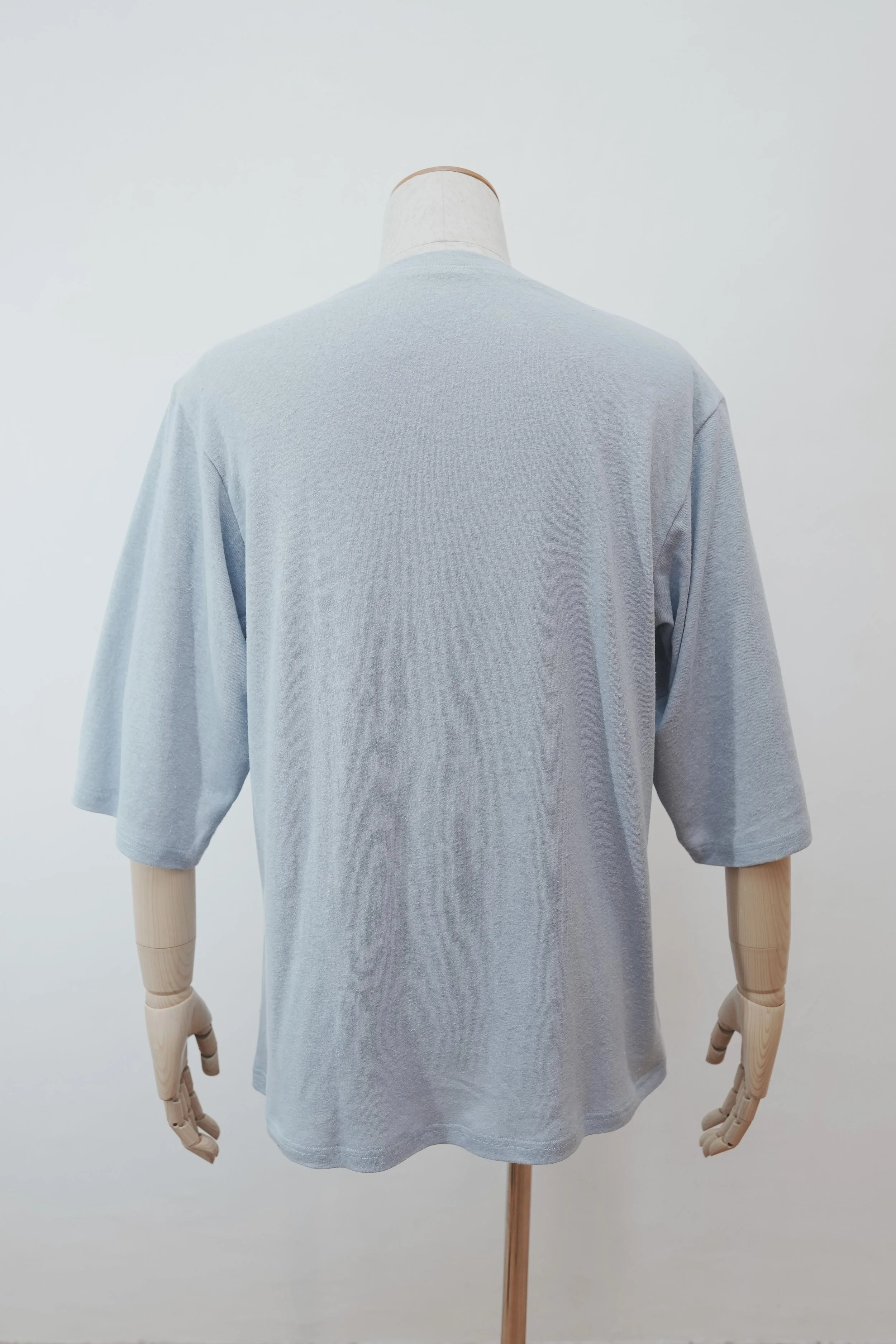This lightweight jersey is expertly knitted in Japan from a premium blend of 55% hemp and 45% cotton. The result is a soft, breathable fabric with a naturally smooth texture and a relaxed, effortless drape—perfect for everyday wear across seasons.